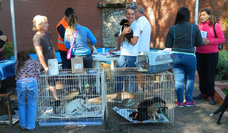 Cada sábado, la esquina de Tapia de Cruz y Colón se llena de caniles con perros y gatos rescatados de la calle que son dados en adopción. Un grupo de voluntarias lleva adelante esta loable campaña, que fomenta la tenencia responsable.