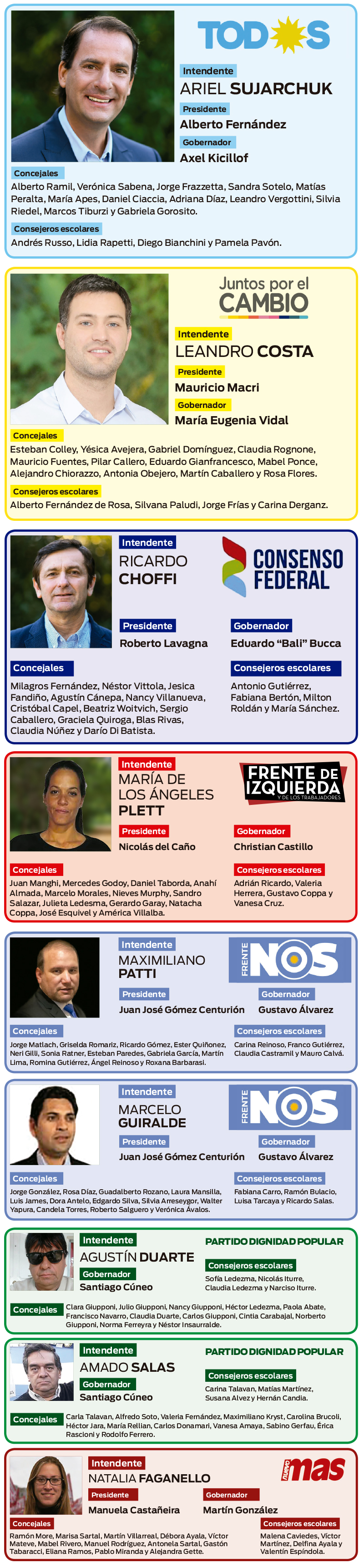 Consenso Federal, en tanto, realizó el jueves 11 la presentación de su lista en un céntrico salón de eventos de Belén de Escobar. “Nuestra propuesta intenta hacerse eco de la demanda del tercio de los vecinos que no quieren volver a votar al kirchnerismo pero que también siente decepción por el macrismo”, afirmó el precandidato a intendente, Ricardo Choffi.