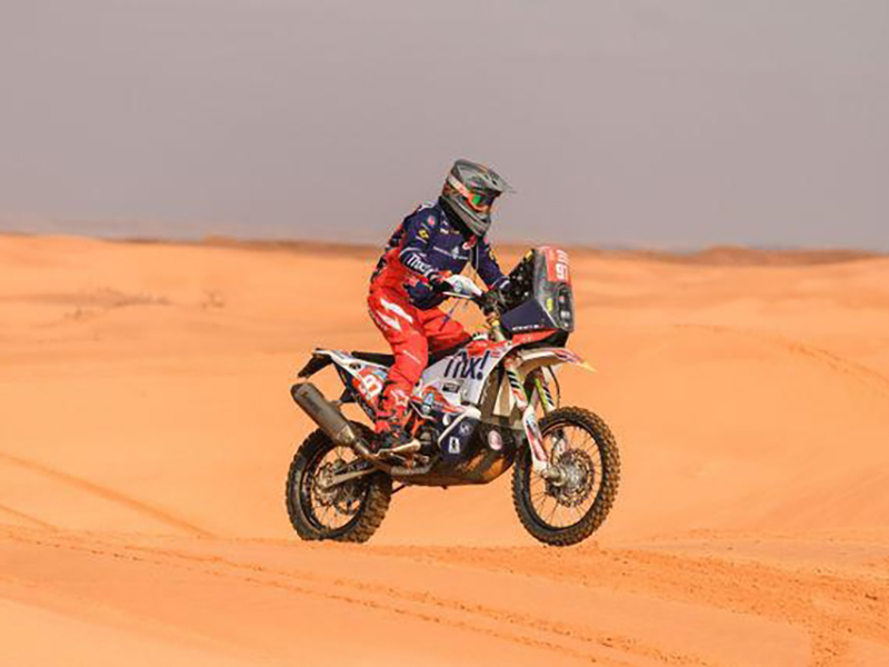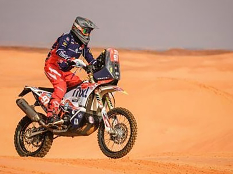 Promediando la tercera etapa, su moto se enterró de punta en una duna y él se golpeó con la torre de navegación. El resultado fue la fractura de cuatro costillas y un dolor insoportable. “No di el parte oficial porque debería haber abandonado. El riesgo era que se me desplace una costilla y me perfore el bazo. Seguí igual y me ponía una bolsa de agua que tenía de repuesto para amortiguar. Es muy psicológico, había que estar tranquilo más allá del dolor. Encima dormía poco y mal”, confiesa al repasar sus peripecias en el desierto.
